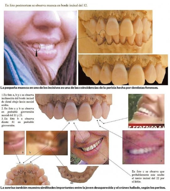 En las fotografías, que ya fueron incorporadas al expediente de la causa judicial, se pueden ver múltiples coincidencias, que van desde una pequeña grieta en uno de los incisivos a la forma del mentón, pasando por las inclinaciones de otras piezas dentarias.