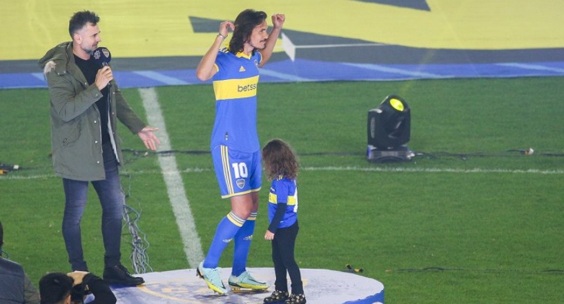 El delantero uruguayo Edinson Cavani fue presentado, ante los socios, como nuevo jugador de Boca Juniors en el Estadio La Bombonera junto a Jorge Amor Ameal, presidente del club, y a Marcelo Delgado, integrante del Consejo de Fútbol.