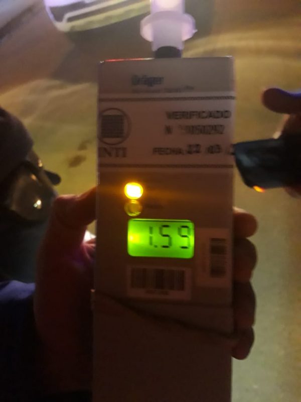 Personal de Control de Tránsito Urbano le realizo el control de de alcoholemia y druguer test arrojando resultados positivos en ambos casos: 1,25 y 1,59 para alcoholemia y cocaína positiva.