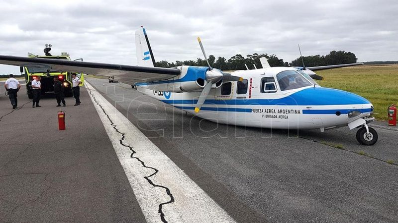 Al aterrizar, la nave sufrió un desperfecto en el tren de aterrizaje, por lo que el fuselaje se deslizó por la superficie de la pista y el avión quedó cruzado hacia el margen izquierdo. Fuentes del aeropuerto señalaron a Télam que el avión realizaba “un vuelo de entrenamiento de rutina” y aclararon que ni el piloto ni el copiloto sufrieron lesiones.