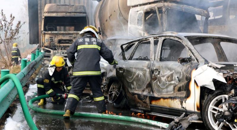 China: chocaron más de 30 vehículos y hay al menos 18 muertos