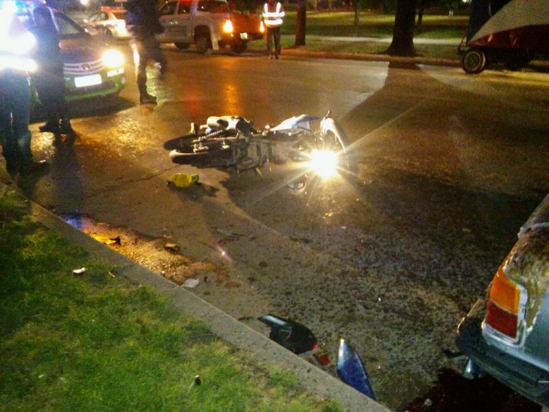 Un accidente de tránsito entre un auto y una moto se produjo esta madrugada en calle Urquiza al 900.