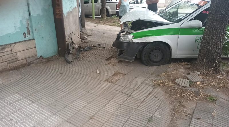 Producto del impacto, el remis colisionó contra el paredón del frente de un domicilio.