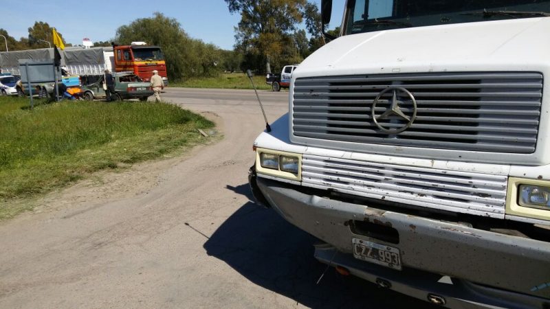 Un auto y un camión chocaron este martes en la ruta 33, frente a la planta de la VTV.