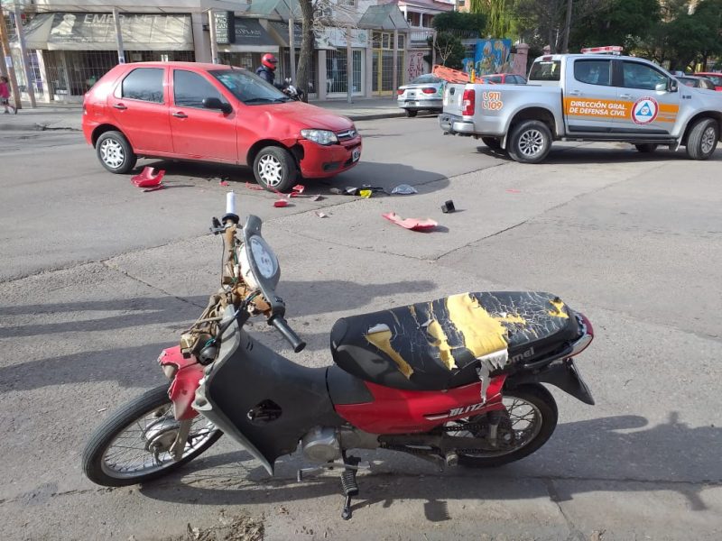 El hecho fue protagonizado por una Motomel 110 cc que conducía un hombre de 28 años y un Fiat Palio que estaba al mando de una mujer de 55 años, que resultó ilesa.