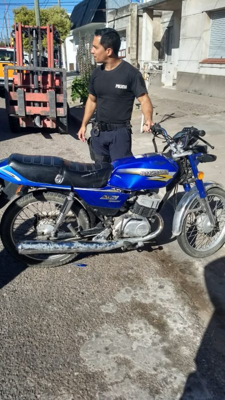 Una moto y un autoelevador de la empresa Codimat chocaron este miércoles en Entre Ríos al 1000.
