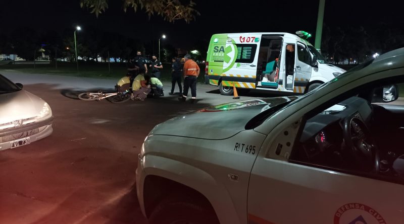 Un auto colisionó una bicicleta en Castelli y 17 de Mayo y se fugó, informaron fuentes oficiales.