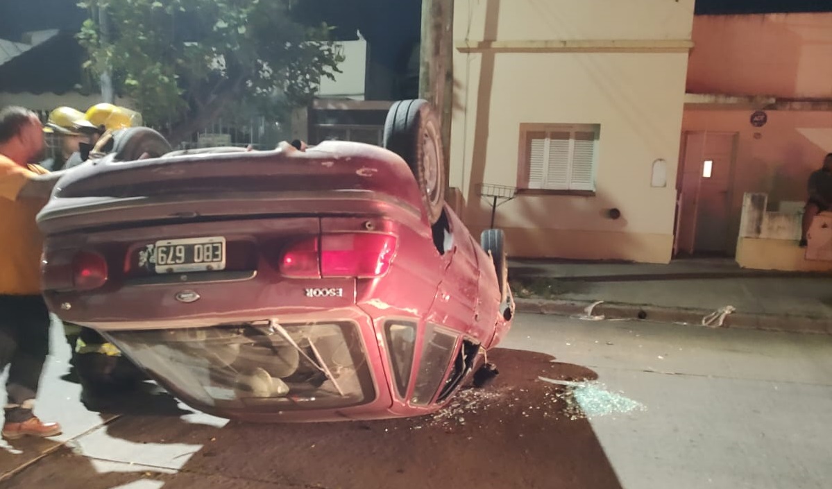 Un Ford Escort que era guiado por un joven de 32 años impactó un Ford Focus que estaba estacionado y volcó.