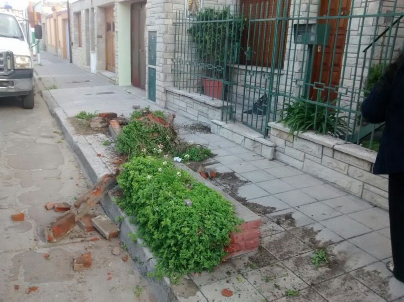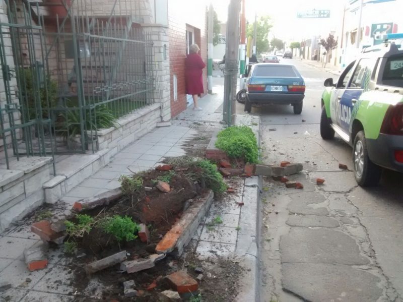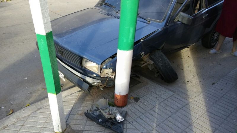 Un auto chocó contra un cantero que está en la vereda en Rincón al 500.