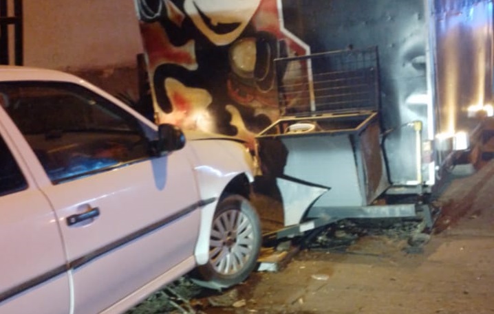 El conductor de una camioneta Volkswagen impactó contra un carro de comidas que se encontraba en Chubut 135.