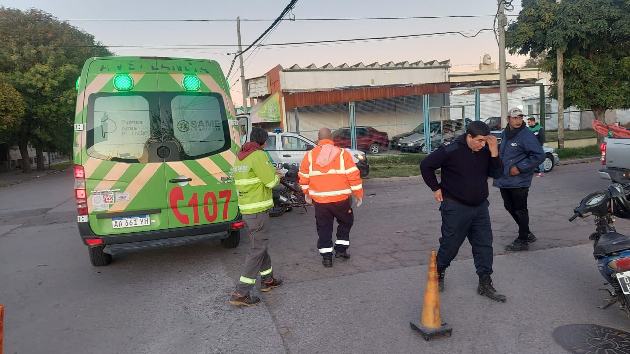 Producto de la colisión, la conductora del rodado menor, una mujer de 53 años, sufrió un fuerte traumatismo de cadera y debió ser trasladada a un hospital en una ambulancia del servicio Siempre.