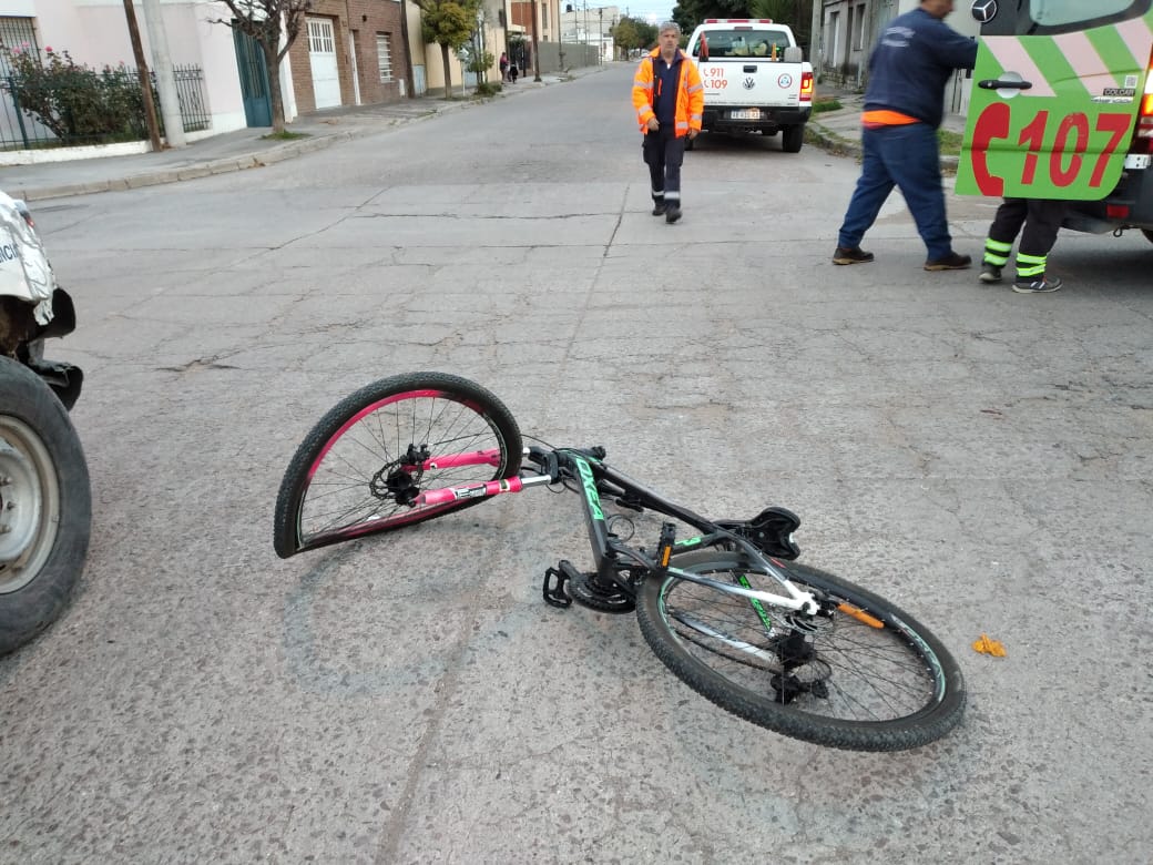 Una mujer que circulaba en bicicleta fue embestida por una camioneta en Parera y Chacabuco.