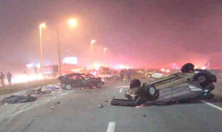 El accidente se inició con el choque de dos automóviles que provocaron una colisión en cadena involucrando a 22 vehículos, cinco motos, 16 automóviles, entre ellos una patrulla policial, y un camión.