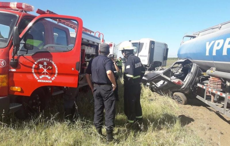 La colisión fue frontal entre un Suzuki Fun y un transporte de combustible de la firma YPF.