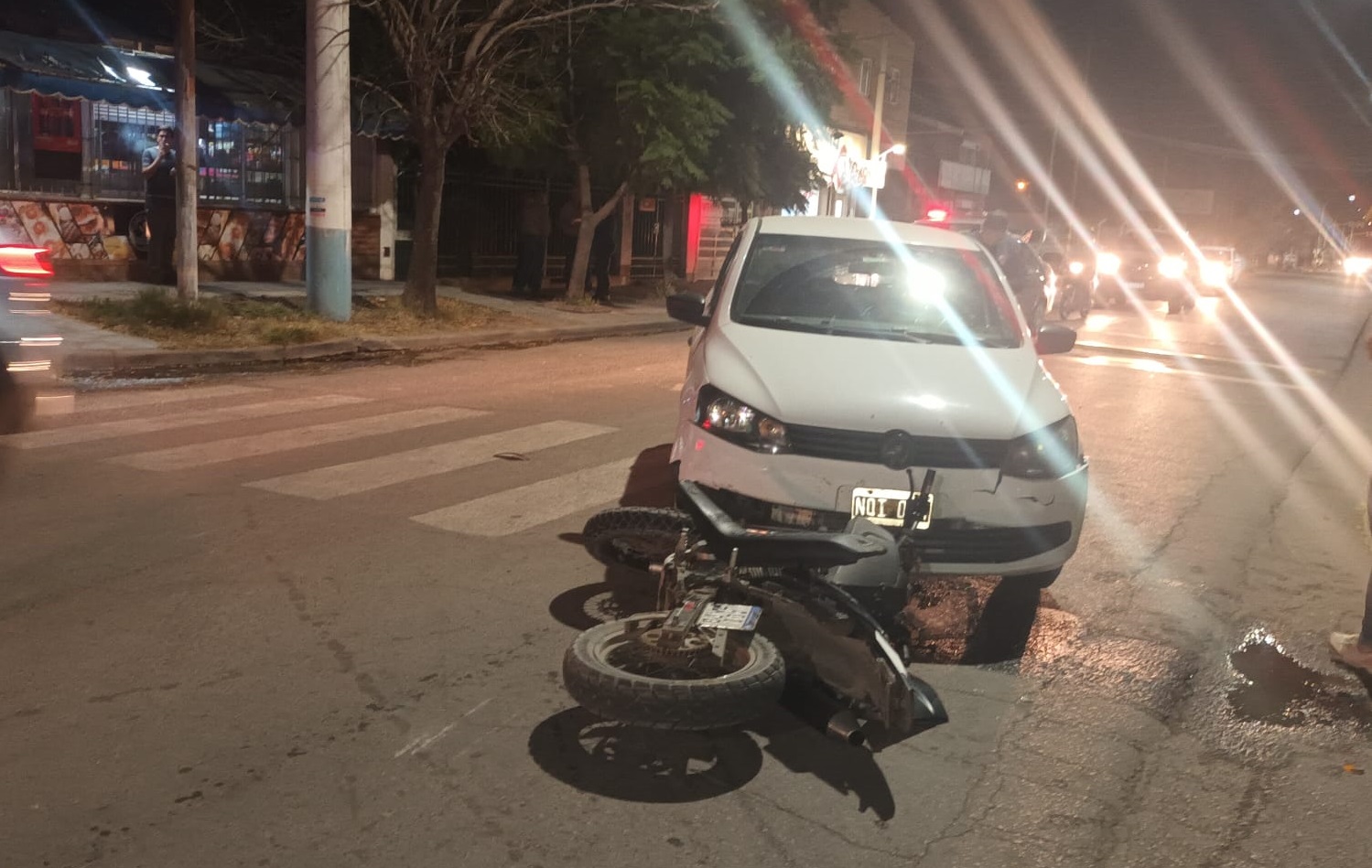 Un auto y una moto chocaron anoche en Zelarrayán y Mallea, informaron fuentes oficiales.
