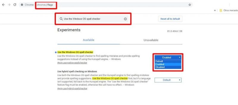 Una vez en esa sección, deberás escribir en el buscador use the Windows OS spell checker. Tal como podés ver en la siguiente captura, en pantalla aparecerá la herramienta, que hay que habilitar eligiendo “Enabled”.