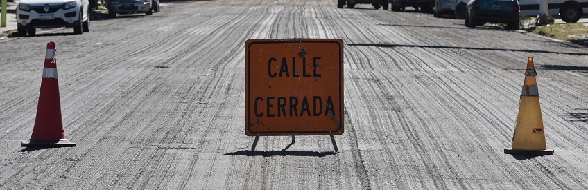 Cierre provisorio de calle de la ciudad por tareas sobre el pavimento