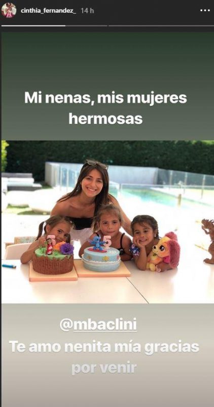 Cinthia celebró la ocasión en su casa de un country de la zona norte y Baclini hasta formó parte de la foto familiar. El papá de las nenas, Matías Defederico, no estuvo presente porque está instalado en Grecia, en una nueva aventura futbolística.