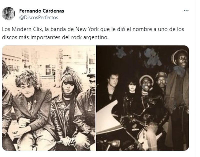 “Una sesión importante por todo lo que significó esa tapa y el disco”, describió Uberto Sagramoso, responsable de la instantánea de Clics modernos, a La Viola después de cuatro décadas. “Viví 24 años en Nueva York, desde 1980. La idea original era que el álbum se llamara Nuevos trapos. La foto original se hizo con esa idea, pero apareció ‘Modern clix’ que era el nombre de una banda new wave de la ciudad”