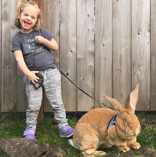 Lindsay, su dueña, fue quien adquirió al animal con el fin de regalárselo a su hija Macy por su cumpleaños. “Hicimos un poco de investigación y encontramos esta raza de conejos gigantes, que son muy buenos con los niños. Supuestamente son calmados y dóciles, pero no teníamos idea en lo que nos estábamos metiendo“, contó.