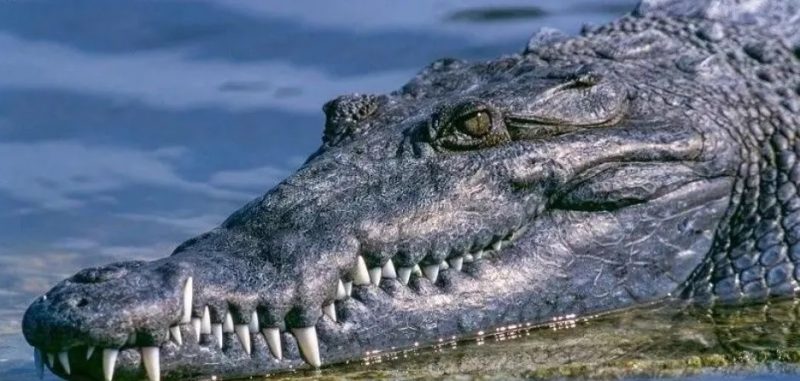 Cocodrilo se puso a descansar en el techo de una casa sumergida