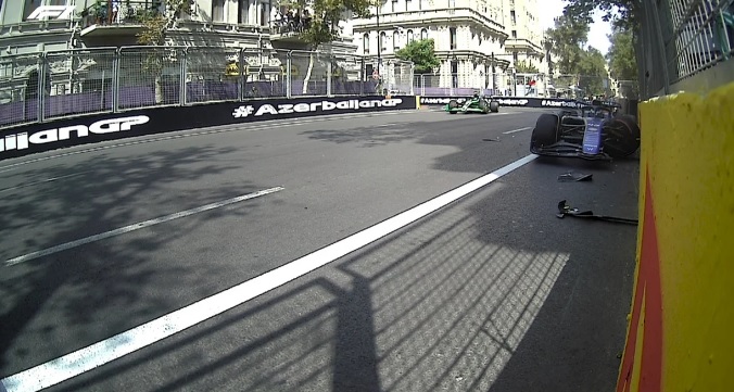 Colapinto perdió el control de su Williams FW46 al llegar a la curva cuatro del trazado callejero de Bakú y golpeó el costado izquierdo del monoplaza, causando daños considerables.