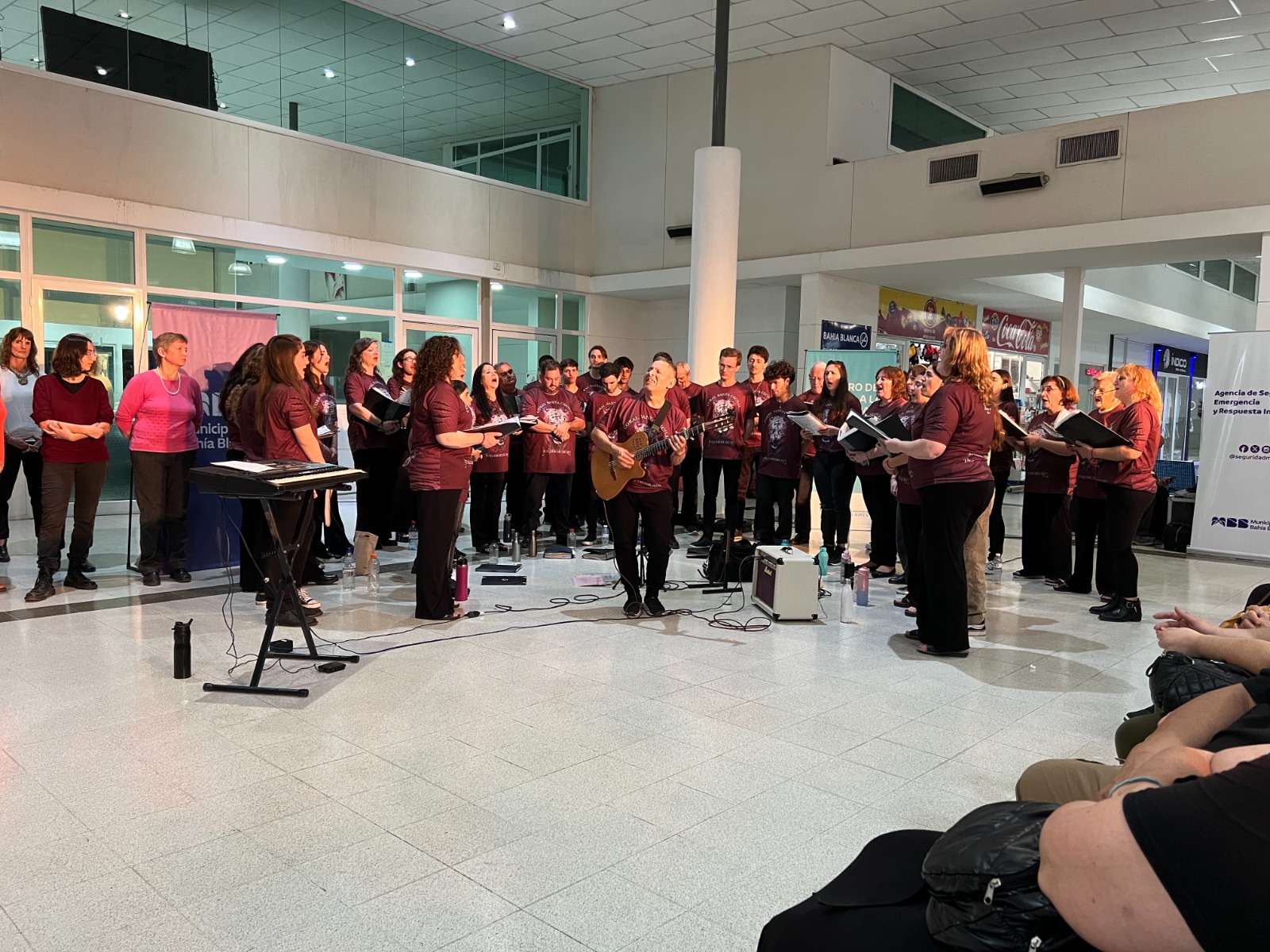 Con el objetivo de atenuar la espera de los pasajeros y enriquecer la agenda cultural local, el Municipio lanzó un ciclo en la terminal, que tuvo su inicio el viernes pasado con las presentaciones del Coral Santa Cecilia, la dirección de Hugo Mazzucco, y el Coro Inestable del Conservatorio de Música, en este caso bajo la dirección de Germán Falcioni.