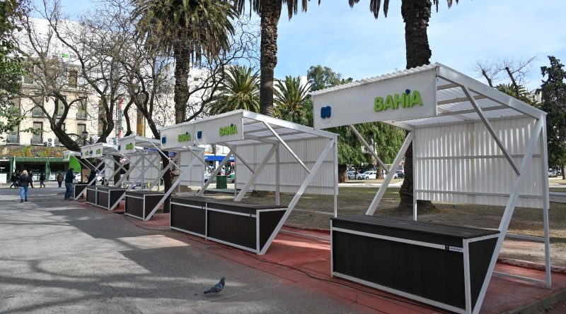 Comenzó la instalación de nuevos puestos para feriantes en la plaza Rivadavia