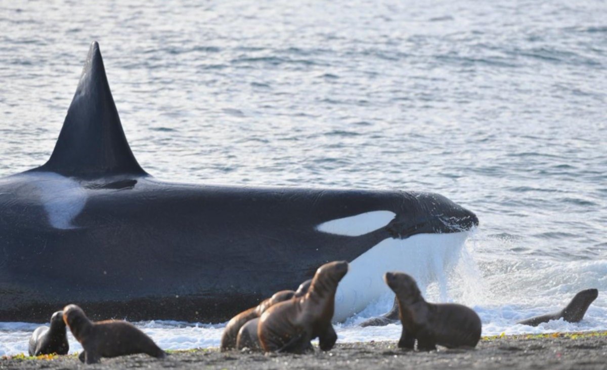Este tipo de orcas es conocido por su particular método de caza para alimentarse, que consiste en el encallamiento deliberado sobre la playa para capturar crías de lobos y elefantes marinos.