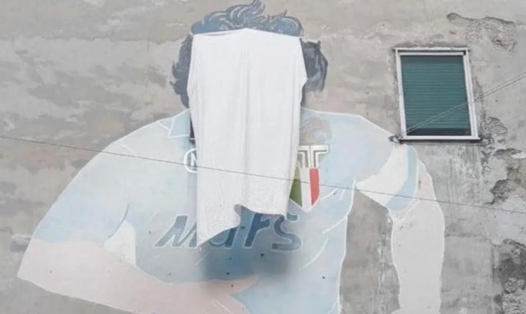 Comerciantes taparon la cara de Maradona en el famoso mural de Nápoles