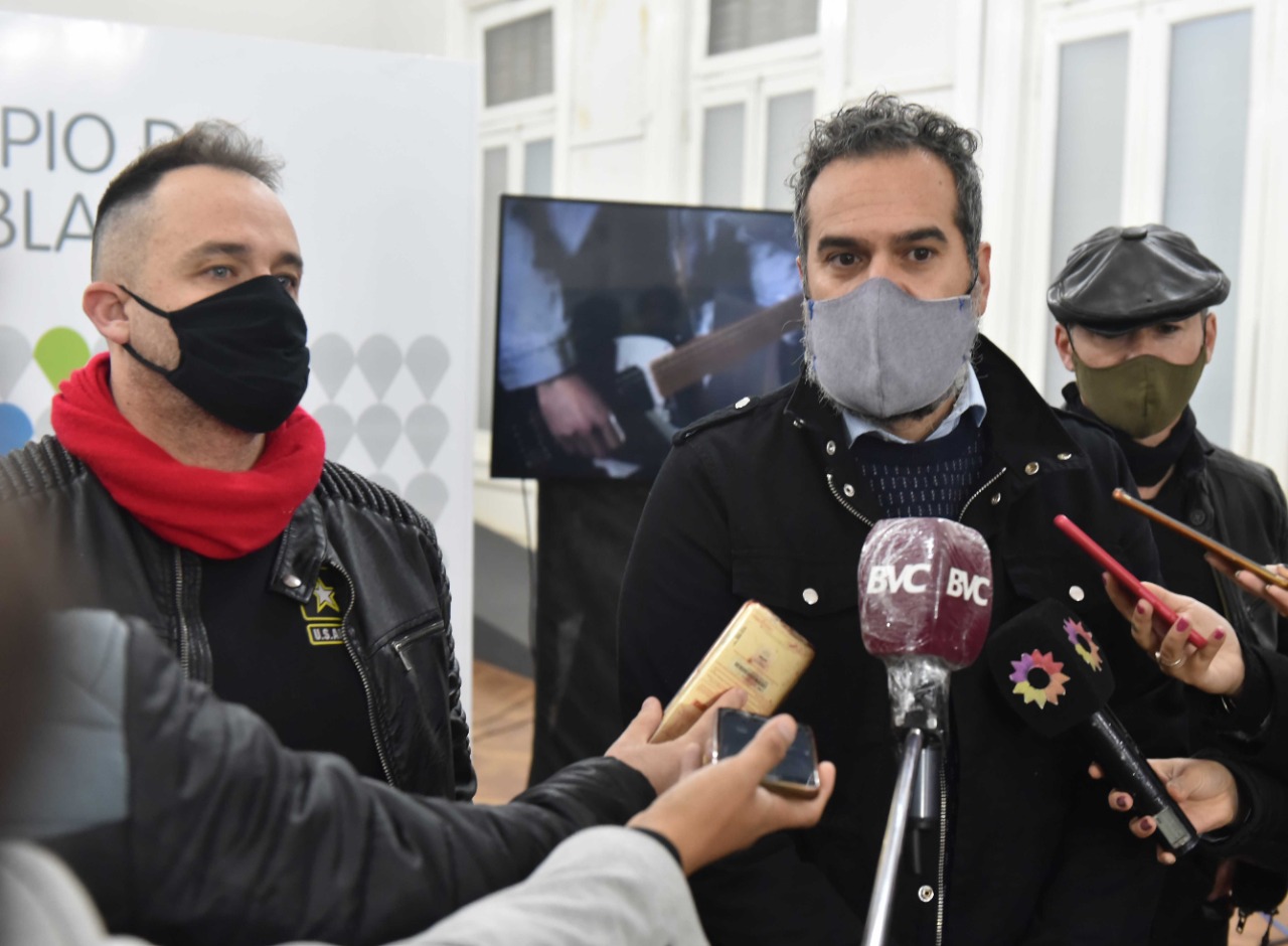 El funcionario estuvo acompañado por Rubén García, director de Arte Emergente y Actividades Culturales en el Espacio Público, y por los músicos Jorge Cravero (Perrito Media Hora) y Jorge Sandoval (Tokados).