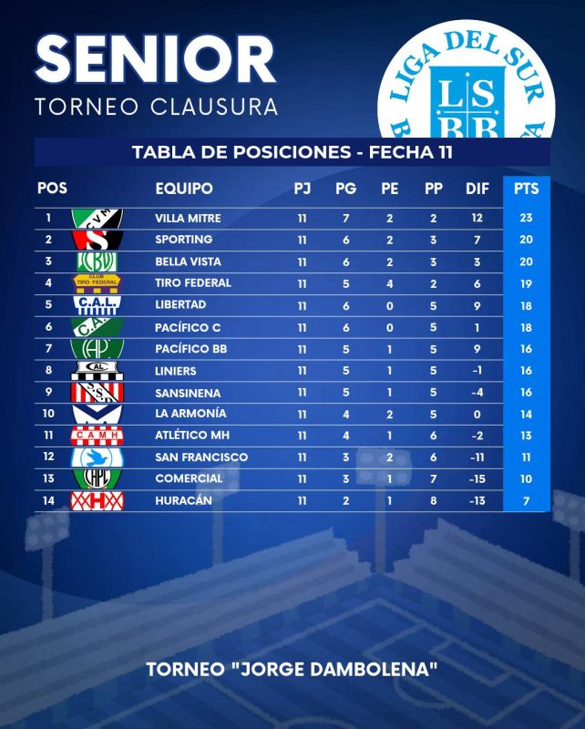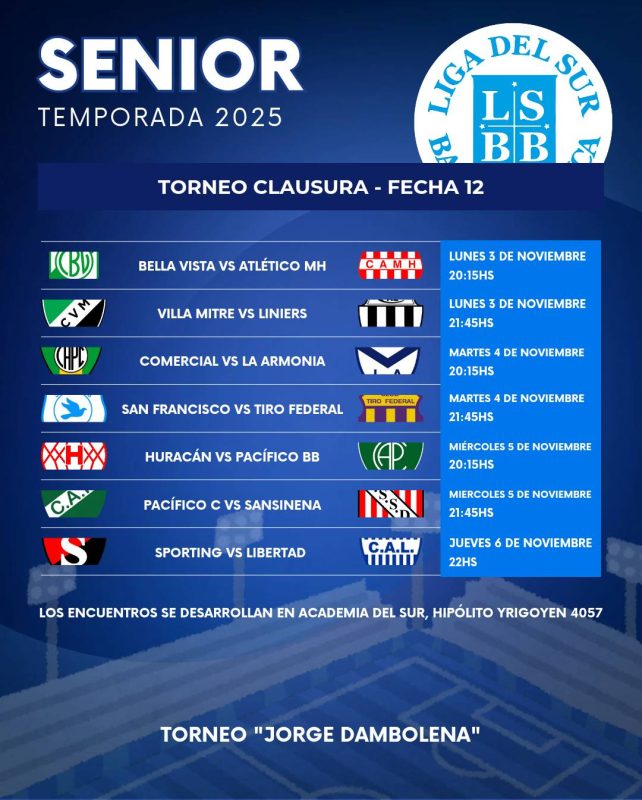 Esta semana se disputará la fecha 12 del Torneo Clausura de Fútbol Senior de la Liga del Sur.