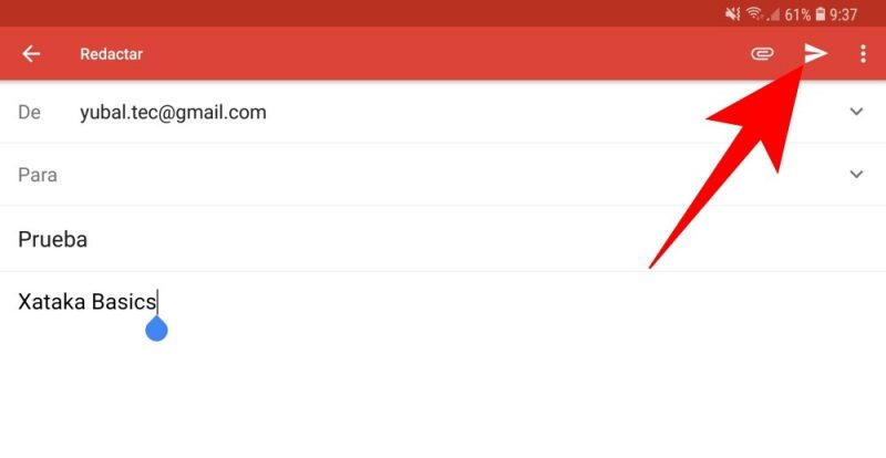 A continuación, escribe el correo que quieras al contacto al que se lo vayas a enviar, y pulsa el botón de la flecha hacia la derecha que tienes arriba a la derecha para enviar el correo como lo has hecho siempre.