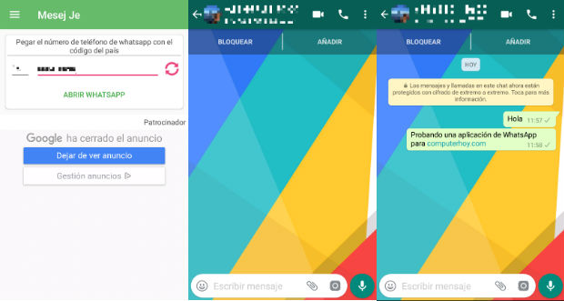 No es la única, pues acabamos de descubrir otra que permite enviar mensajes de WhatsApp a números que no son contactos registrados. Se llama Mesej Je y es totalmente gratis para Android en Google Play, aunque incluye publicidad. Si quieres dejarla libre de anuncios tienes que comprar la versión Pro.