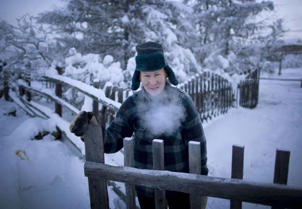 El fotógrafo Amos Chapple retrató la vida en Oymyakon y lo recuerda así: “Llevaba puestos unos pantalones finos la primera vez que salimos al exterior, a – 47. Recuerdo sentir cómo el frío se aferraba físicamente a mis piernas, la otra sorpresa fue que en ocasiones mi saliva se congelaba en agujas que pinchaban mis labios”.