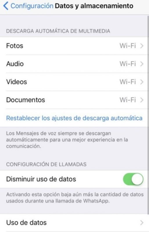 Además, activa la opción “Uso reducido de datos” si preferís gastar menos datos móviles de tu plan durante llamadas de WhatsApp. Eso sí, debido a la reducción de datos la calidad de las llamadas también disminuirá.