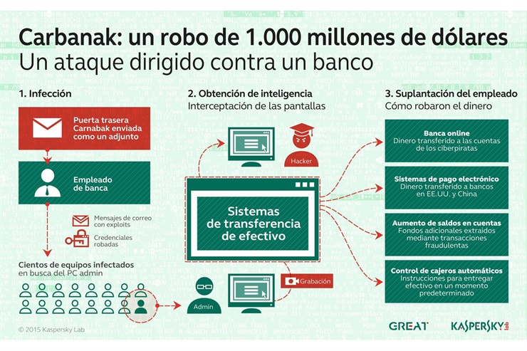 Estos hackers accedían a las redes internas de los bancos enviando correos electrónicos fraudulentos ( lo que se conoce como phishing) a empleados que ocupaban puestos clave en esas entidades.