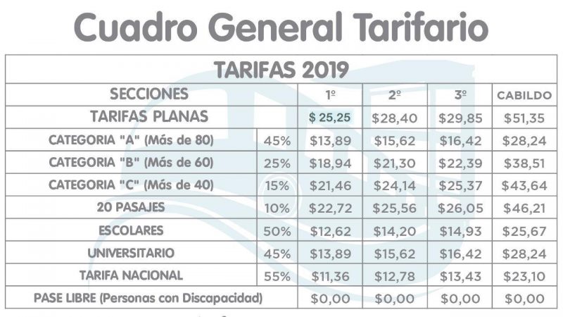 El mismo tendrá una tarifa plana de $25,25, con descuentos para los pasajeros frecuentes que utilicen más de 80, 60, 40 y 20 pasajes que abonarán desde $13,89; $18,94; $21,46 y $22,72 respectivamente. En tanto el pasaje para los beneficiarios de la Tarifa Nacional será de $11,36.
