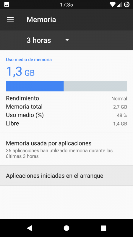 Veremos una nueva pantalla de configuración con un resumen sobre la memoria RAM de nuestro dispositivo que tenemos ocupada. En la parte inferior veremos un apartado llamado “Aplicaciones iniciadas en el arranque“. Pulsamos sobre él.