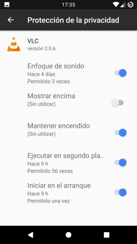 Ahora, pulsaremos sobre la aplicación que queramos y nos aparecerá una lista de opciones relacionadas con la privacidad de nuestra aplicación como la siguiente.