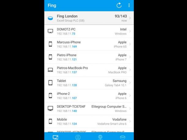 Una vez que hayas instalado dicha aplicación deberás pulsar el icono de actualizar para escanear nuestra red Wifi. Cuando termine te mostrará todos los dispositivos conectados a nuestro Internet.