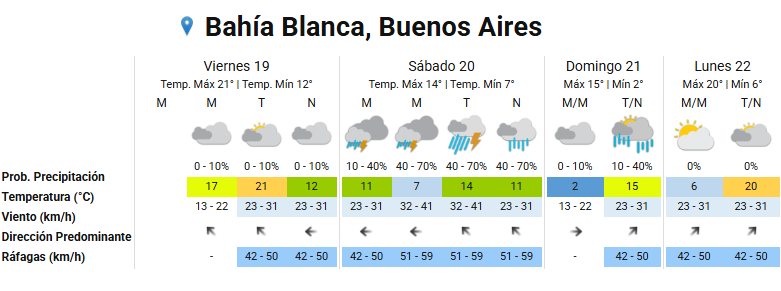 El Servicio Meteorológico Nacional (SMN) actualizó el pronóstico del tiempo para Bahía Blanca y anunció que ya no rigen alertas para este viernes.