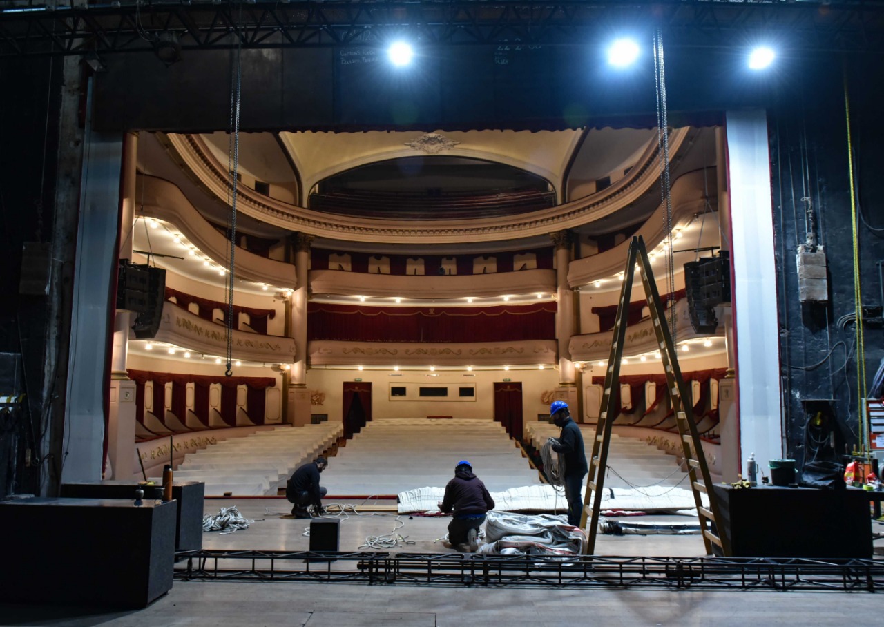 En el marco de la obra de puesta en valor del Teatro Municipal, se iniciaron los trabajos para concretar el ignifugado del telón principal, de los telones de fondo, bambalinas y patas.