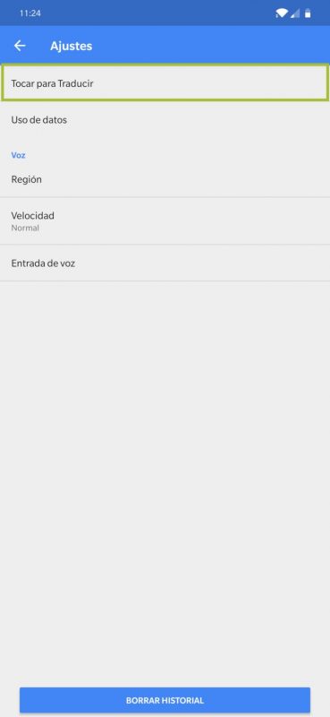 Toca sobre “Ajustes” y entra a la sección “Tocar para traducir”.