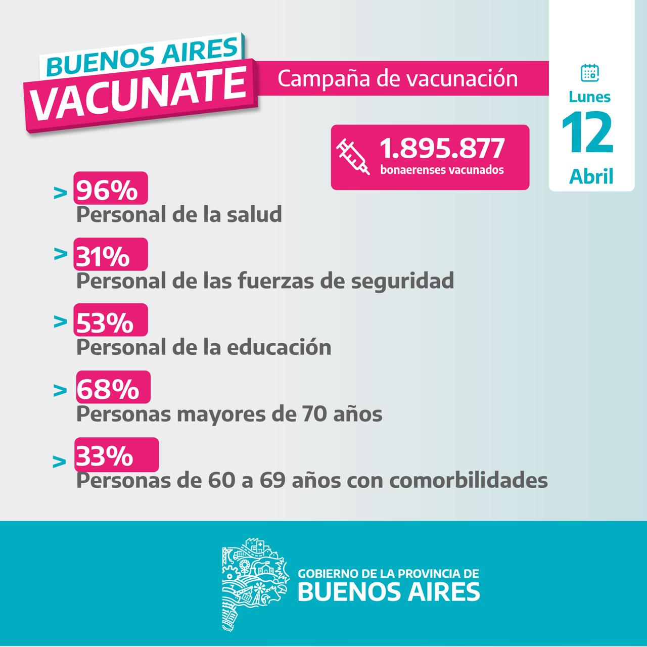 El ministro de Salud bonaerense, Daniel Gollan, dijo que hacia fin de semana se habrán vacunado en la provincia, “el 100 por ciento de los adultos mayores de 70”, y que se aumentará la vacunación para otros grupos, en la medida que se disponga de las dosis.