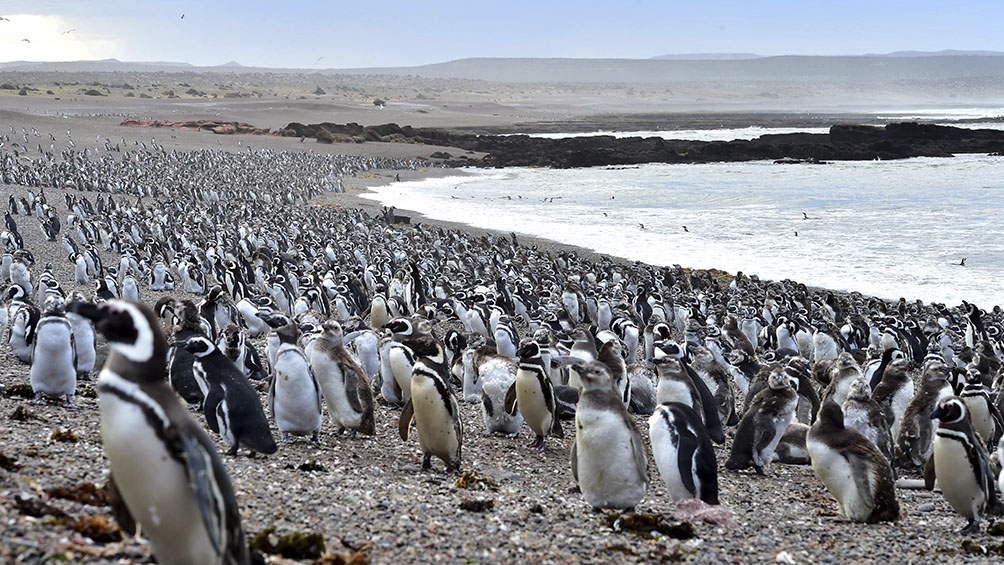 La reserva tiene una superficie de 210 hectáreas que llega a ser la más poblada del continente con más de un millón de pingüinos cuando la familia se completa.
