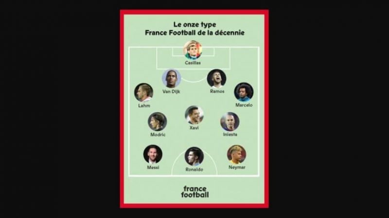 La prestigiosa revista de fútbol France Football, que otorga el premio del Balón de Oro, dio a conocer hoy al once ideal de la última década. En el equipo había algunos cantados, como Lionel Messi y Cristiano Ronaldo, y otros que despertaron algunas polémicas.