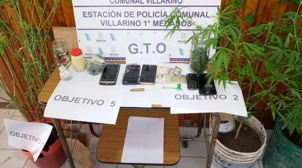 Además, en el patio delantero de la finca, detrás de una chapa, se hallaron 4 recipientes plásticos utilizados como macetas conteniendo un plantín de marihuana cada uno.