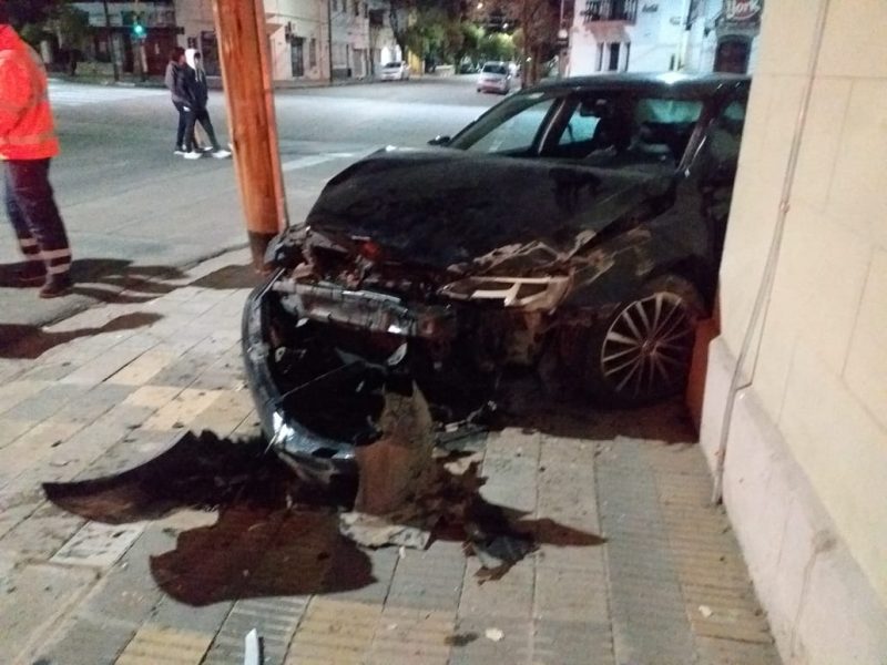 Un auto chocó contra un inmueble de la ciudad durante la madrugada de este sábado y su conductor dio positivo en el test de alcoholemia, informaron fuentes oficiales.