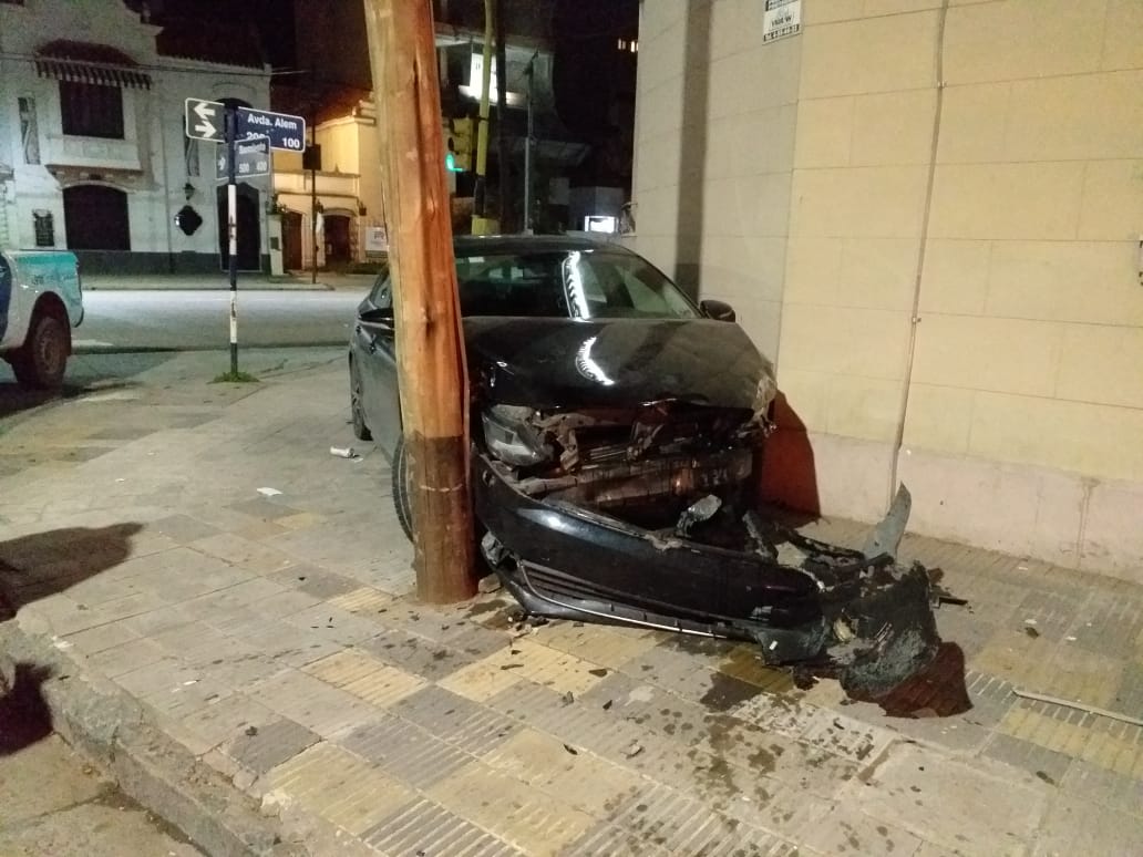 El suceso se produjo a las 5:40 en la intersección de avenida Alem y Sarmiento cuando una persona se subió a la vereda con un Volkswagen Vento y colisionó contra un inmueble.